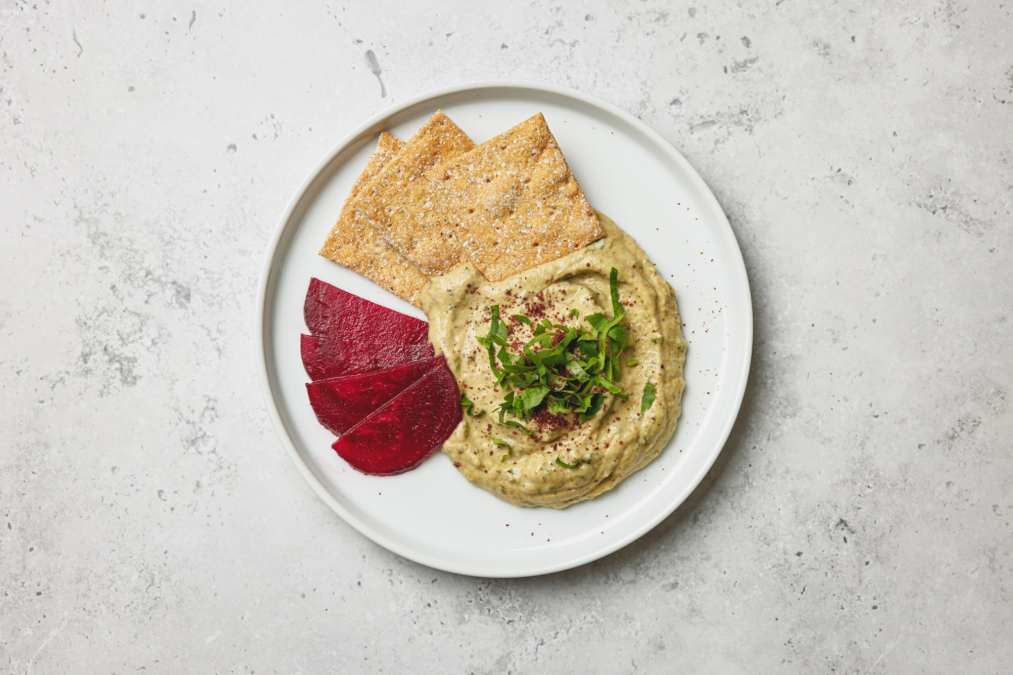 Aubergine/Tahini/extra virgin olive oil/fresh parsley/fresh coriander/garlic/lime juice/cumin/black pepper/smoked salt/ liquid smoke
