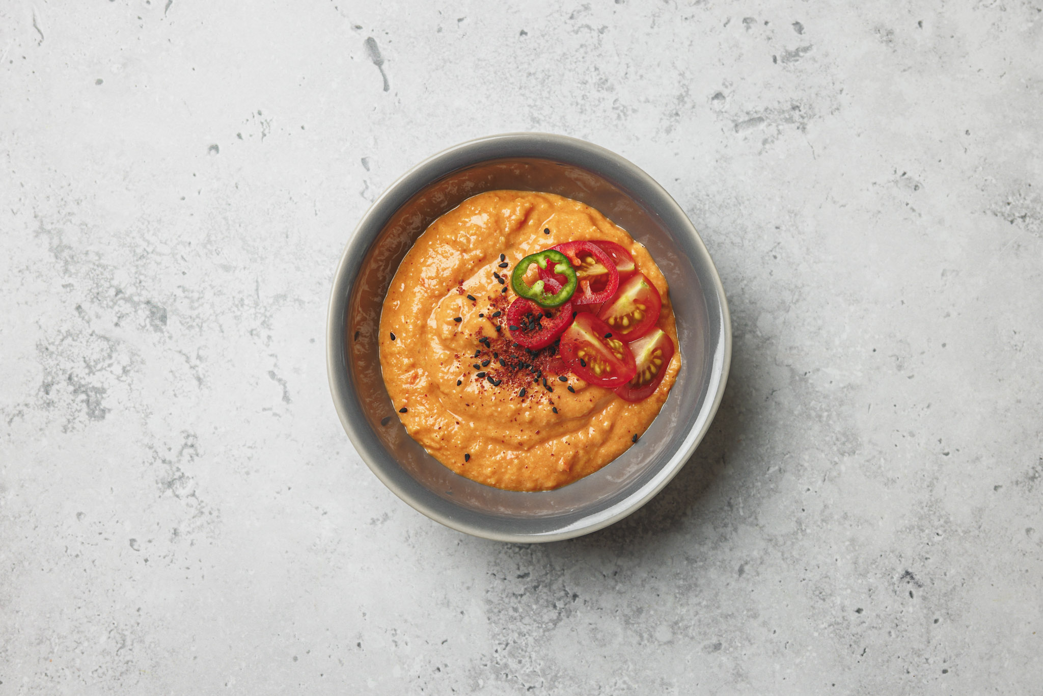 Serving suggestion: Perfect dip for sharing using your favourites dipping tool: pitta, celery or bread sticks. Garnish with some fresh tomatoes and nigella seeds.